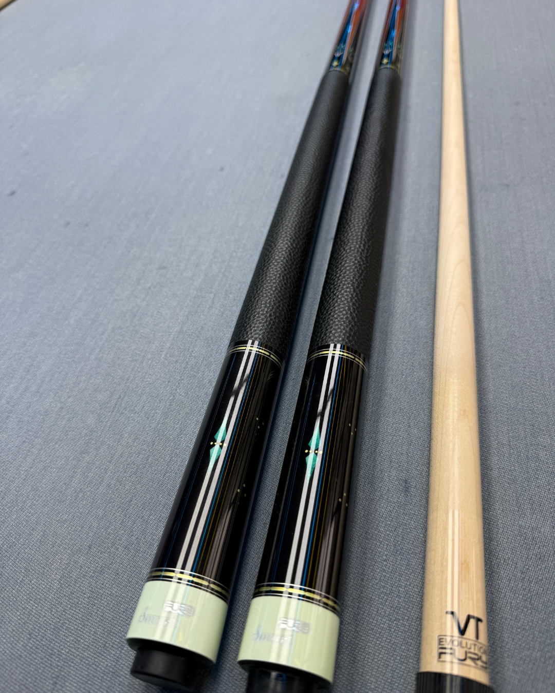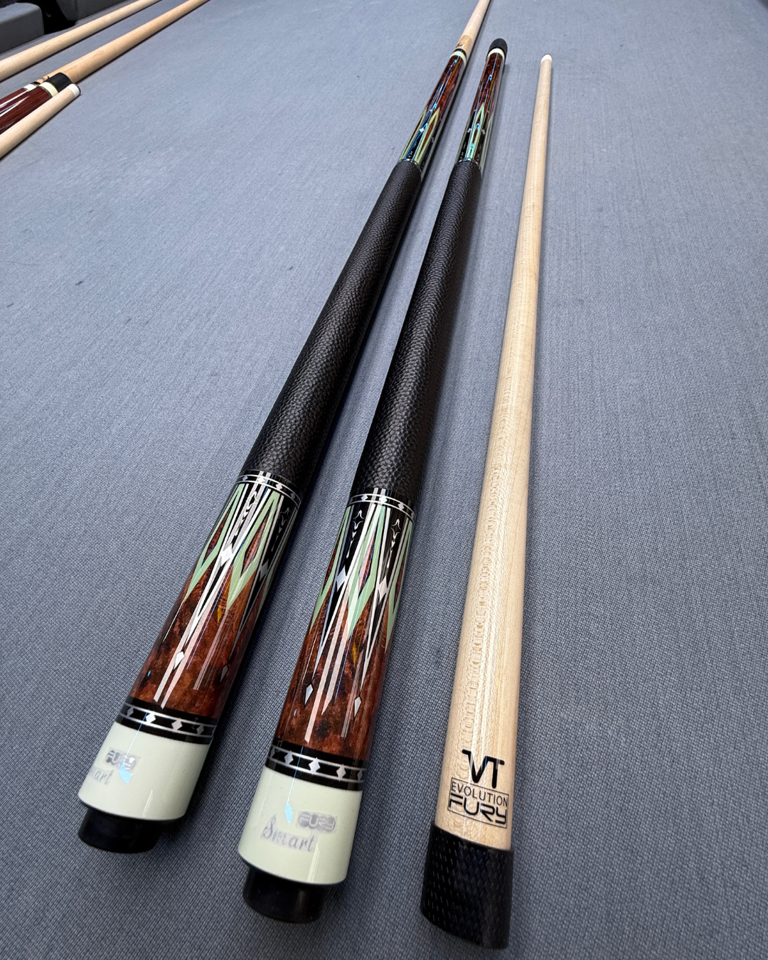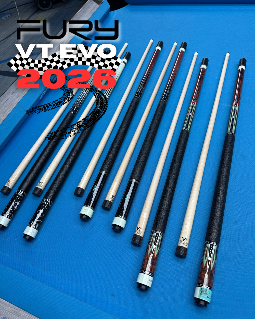 The cue features the FURY VT Evolution low-deflection maple shaft for high accuracy and reduced squirt.