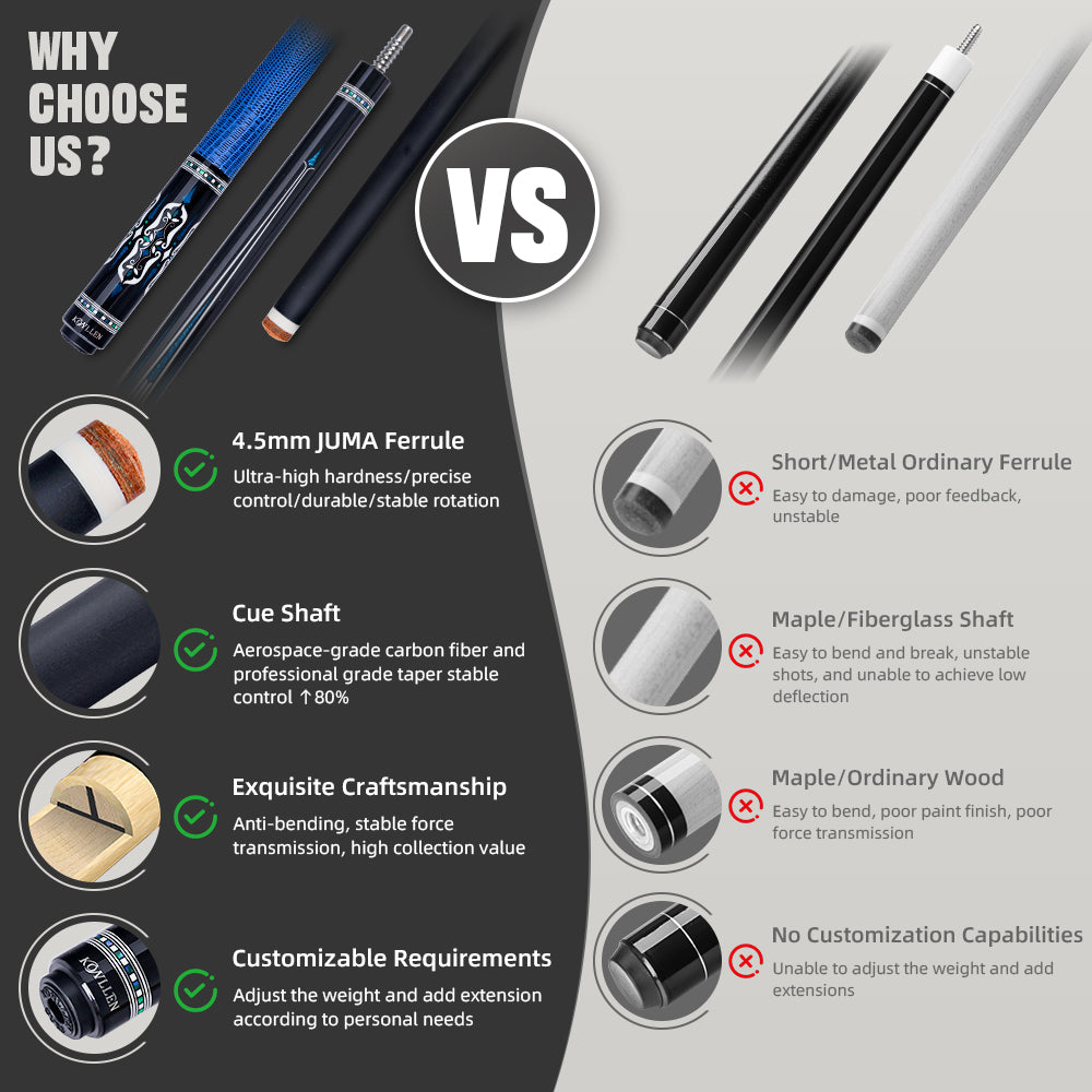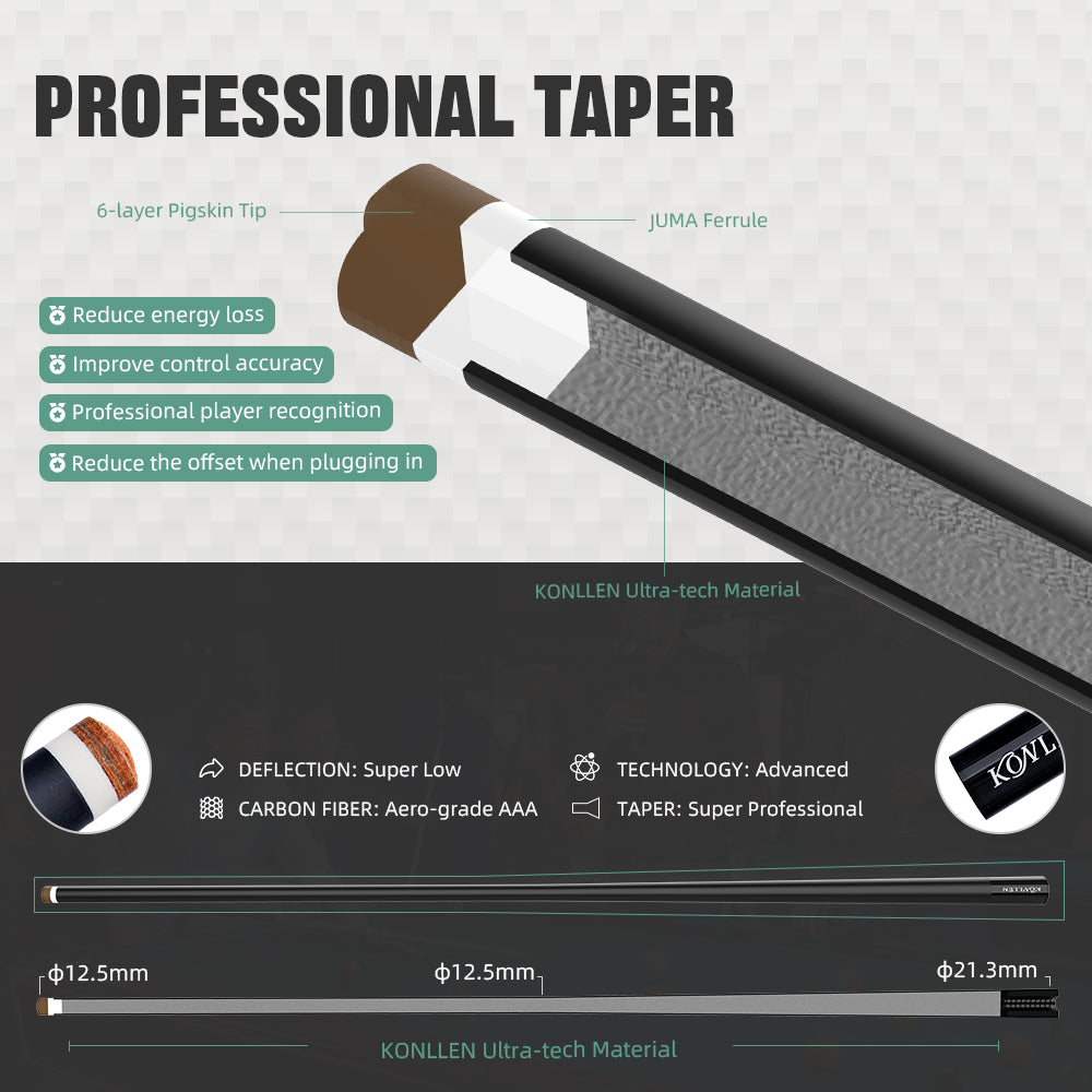 The AMG series reflects KONLLEN’s commitment to modern engineering, refined aesthetics, and player-focused performance. Suitable for both professionals and passionate amateurs, this cue delivers an elevated playing experience, shot after shot.