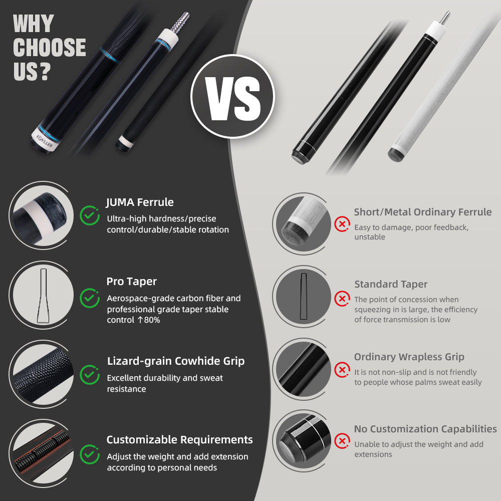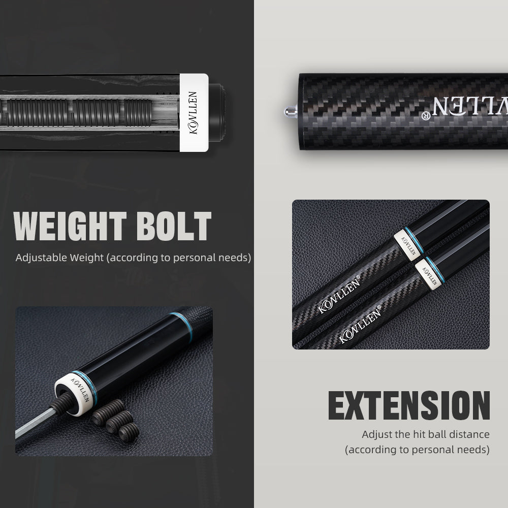 Equipped with a 3/8*8 radial joint, this cue delivers fast assembly, strong connection, and reliable low-deflection performance. The carbon-fiber shaft reduces cue-ball deviation, giving players precise and consistent shots.
