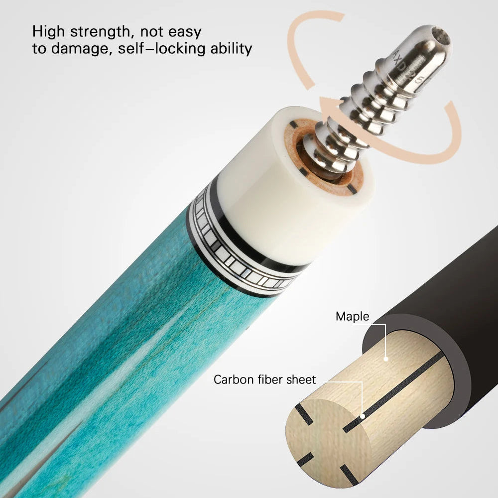 Equipped with a 3/8*8 radial joint, this cue delivers strong connection, and reliable low-deflection performance, giving players precise and consistent shots.